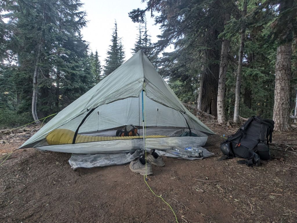 Um 19:35 war ich am Ziel und habe schnellstens mein Zelt aufgebaut, bevor ich zur Quelle runter gestiegen bin und mein Wasser gefiltert habe.