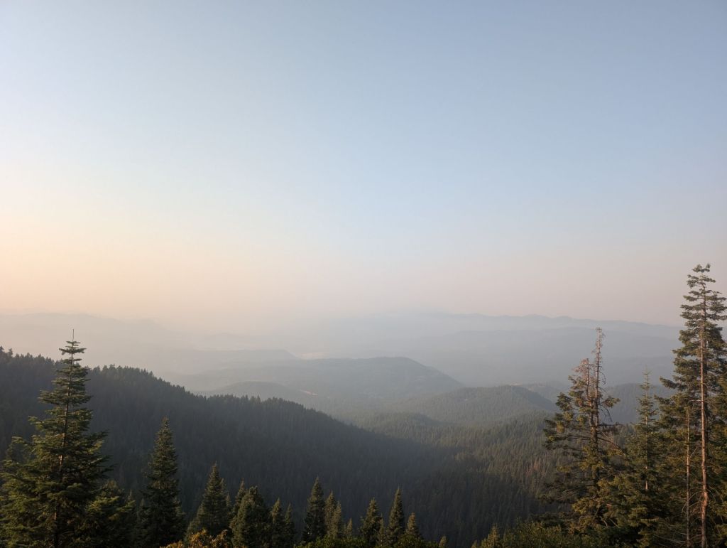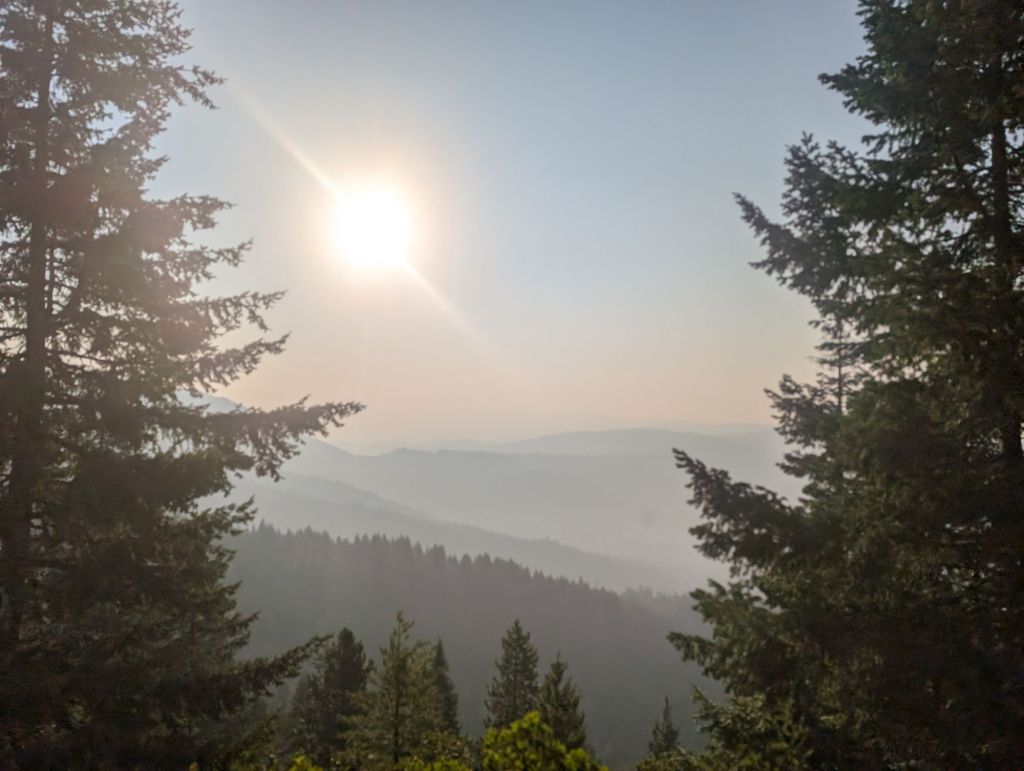 Über Nacht hat der Wind allerdings Rauch ins Tal geblasen. Das was man im Bild sieht ist kein Frühnebel, sondern Rauch. Was bei mir zu leichten Kopfschmerzen geführt hat.