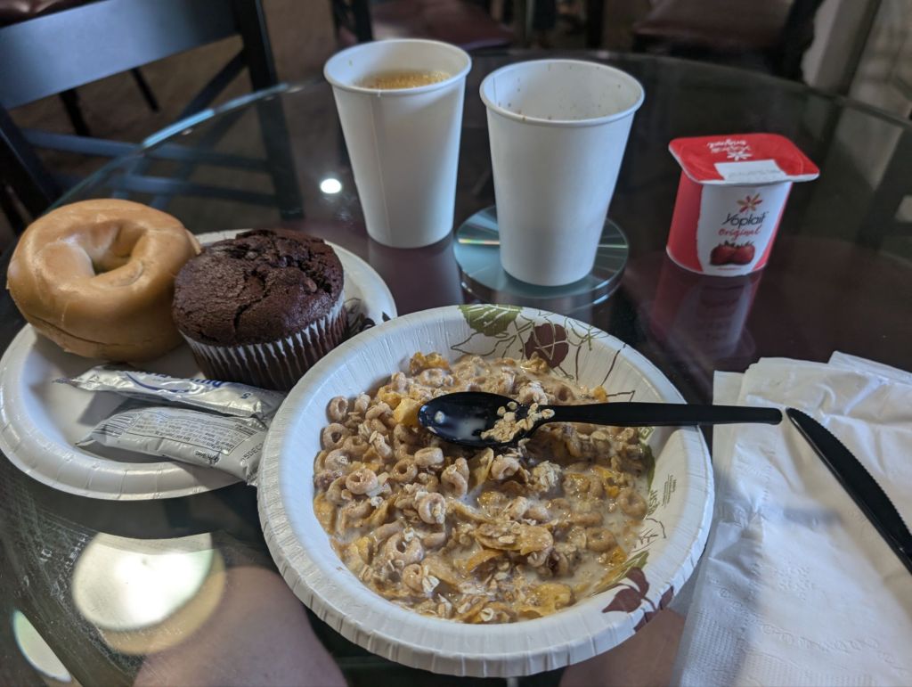 Pünktlich um 8h war ich beim Frühstück. Das war zwar nichts besonderes, aber gut genug.