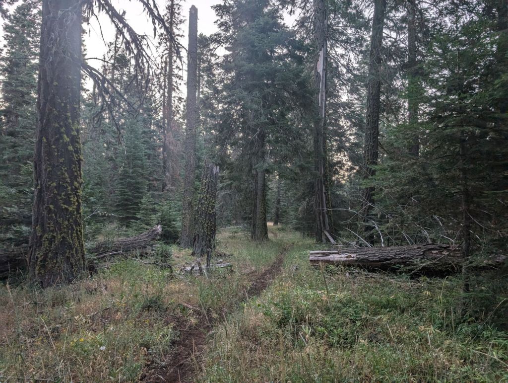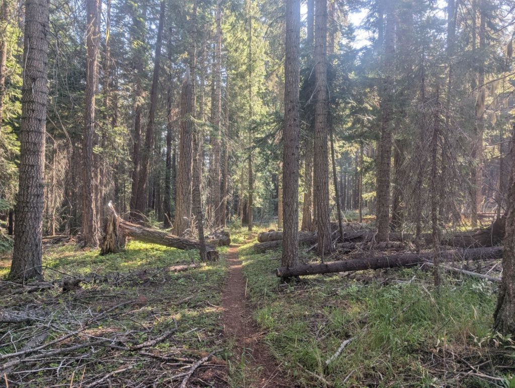 Den Vormittag über verlief der Trail flach rollend, also mit sanften Anstiegen durch Wald und kreuzte dabei eine Unmenge an Waldwegen.