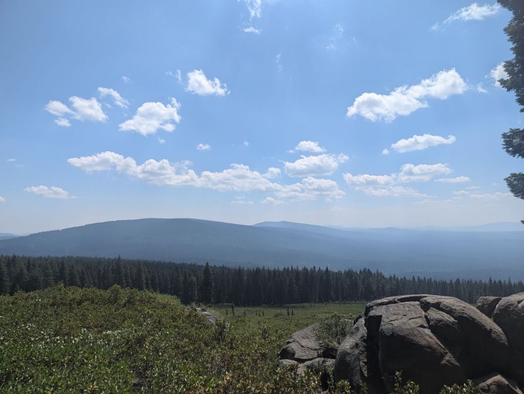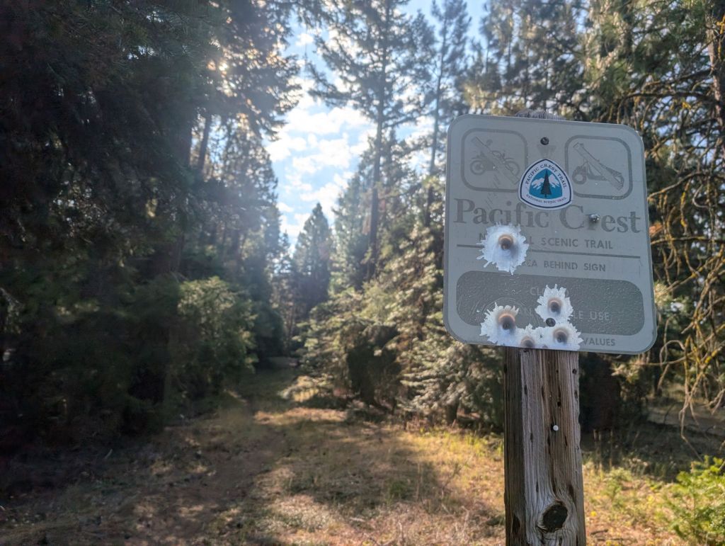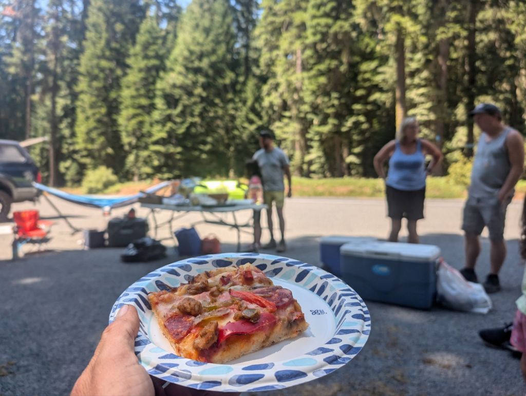 Als ich mich aber der Straße kurz davor genährt habe, da habe ich Stimmen gehört. Und Leute auf Campingstühlen sitzen sehen. Ich wollte mir nicht zu viel Hoffnung machen, da ruft mir jemand „Trail Magic!“ zu. Ich habe vor Freude gejauchzt! Insgesamt habe ich hier fast eine Stunde Pause gemacht. Kalte Pizza und ein kaltes Mountain Dew – ich war so glücklich!