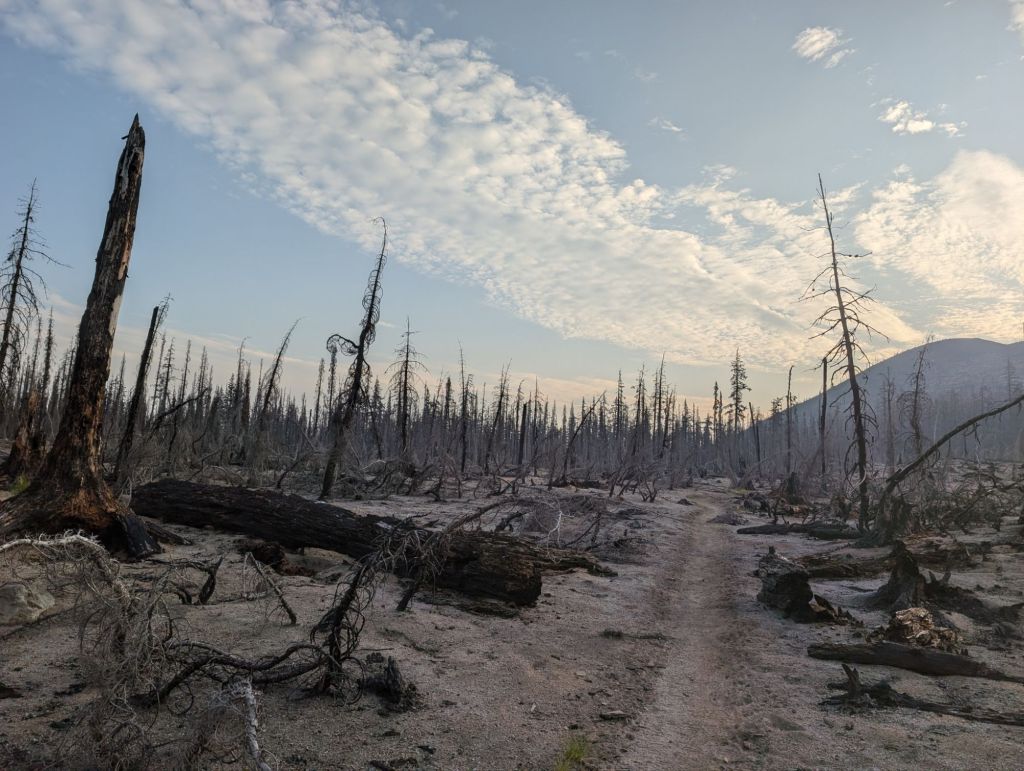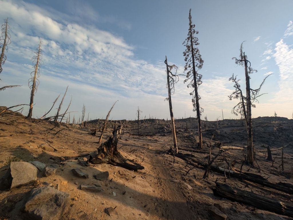 Danach kam ich in eine ehemalige Burn Zone. Zu Beginn war die noch mit den anderen zu vergleichen. Später war es einfach nur trostlos. Ich will mir nicht vorstellen, wie das Feuer hier gewütet haben muss, damit es so aussieht.