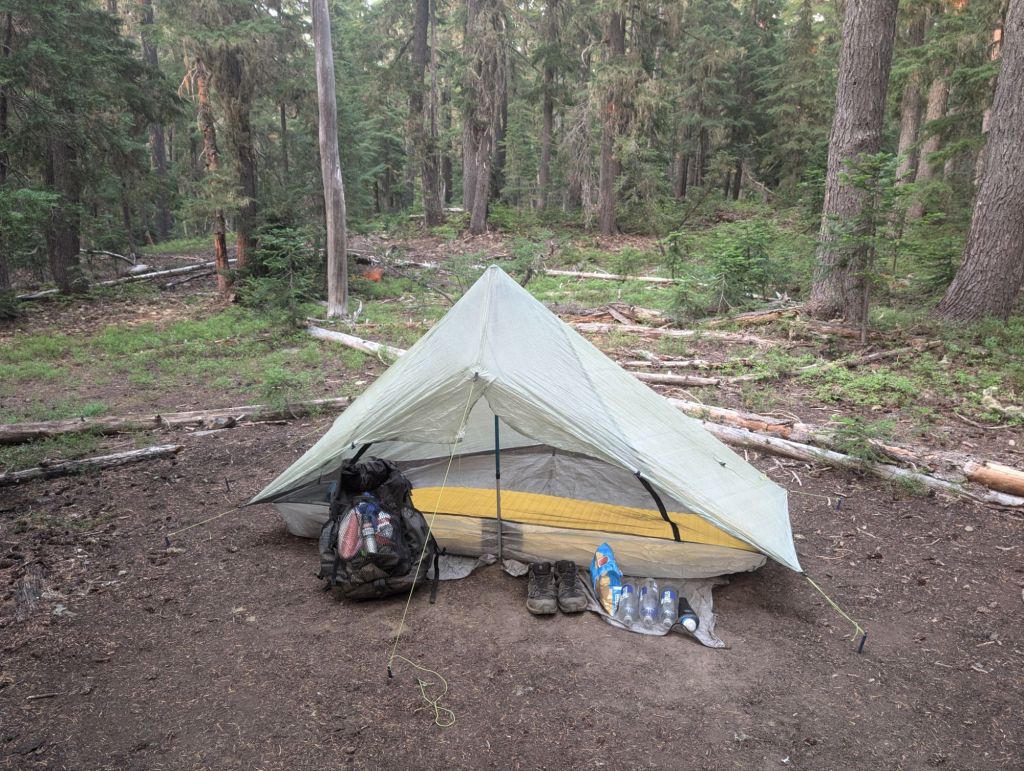Am Camp habe ich mein Zelt aufgebaut, Wasser gefiltert und mich im Bach gewaschen. Zu Abend gegessen habe ich mit Omens, der aber noch weiter wandert. So wie es aussieht, übernachte ich hier heute wieder alleine.