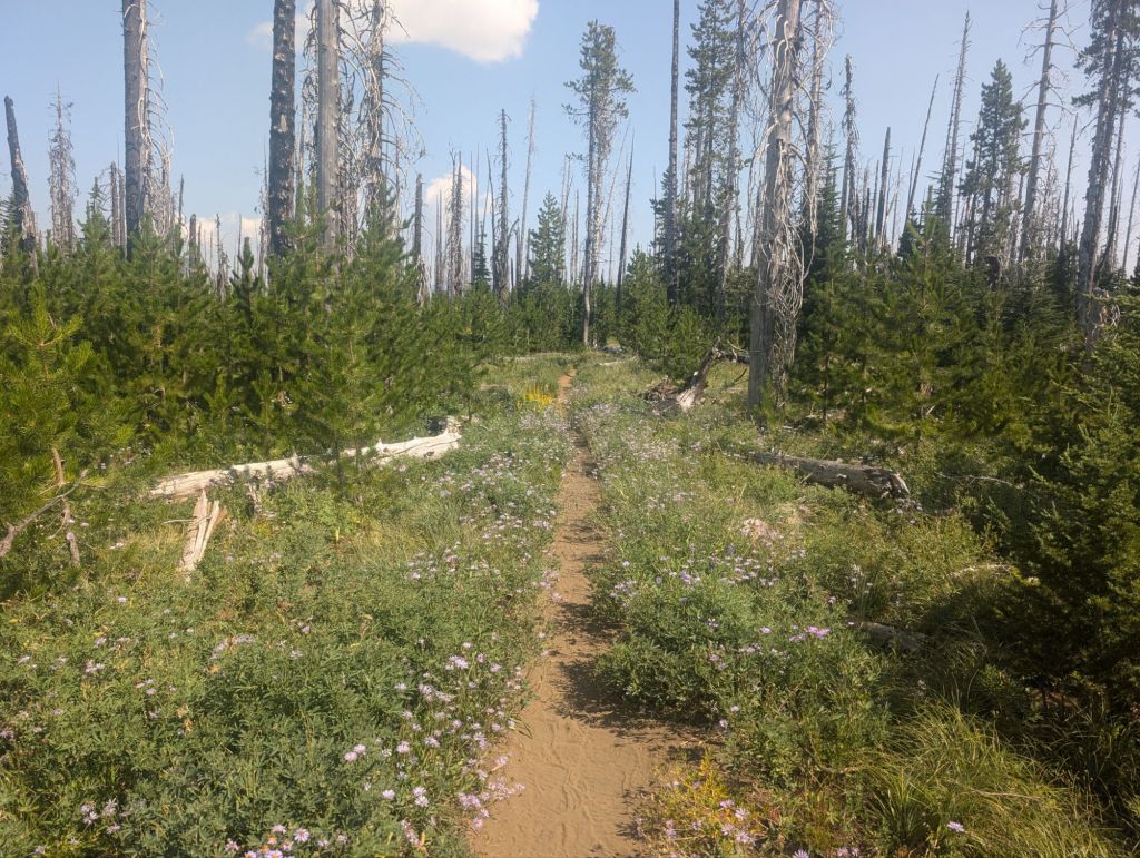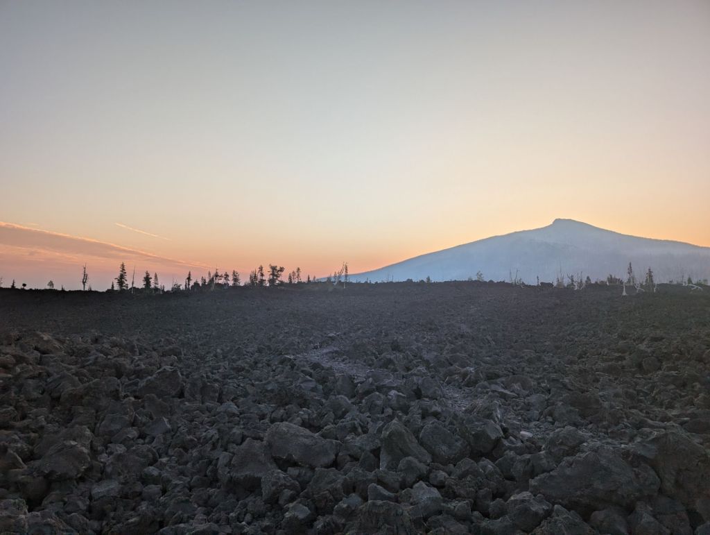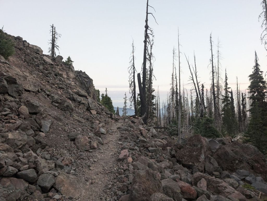 Gestern Abend hatte ich noch gedacht, super, jetzt bist Du in einer Burn Zone. Und raus aus den Steinen. Aber nichts da. Heute ging es erst richtig los. Und wenn ich nicht mit Schmerzenden Füßen in abgelaufenen Schuhen darüber hätte laufen müssen, dann hätte ich das wahrscheinlich richtig schön gefunden. So war es nur ein bisschen schön. 😉