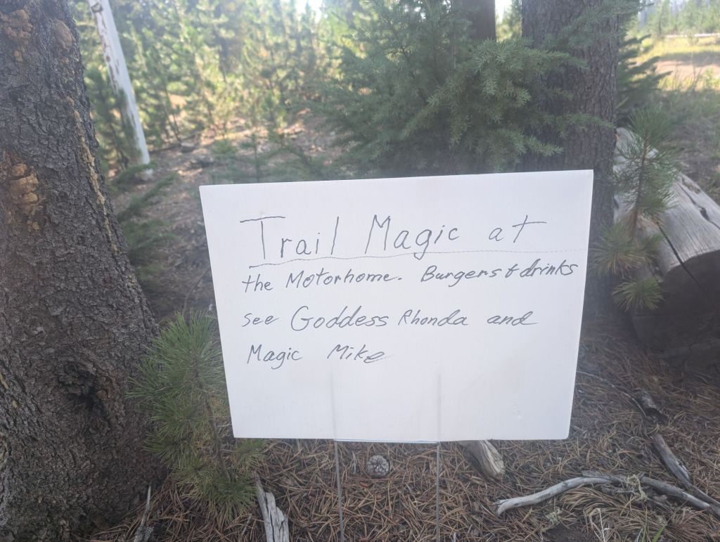 Und wirklich, an der Santiam Wagon Road richtet Magic Mike mit seiner Frau Goddess jedes Jahr mehrere Tage am Stück Trail Magic aus. Mit kaltem Getränken, selbst gemachten Cookies und Burgern! Vielen Dank Ihr Zwei!