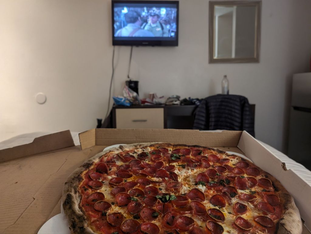 Zurück im Hotel habe ich mir eine Pizza bestellt und dabei Men in Black geschaut.
