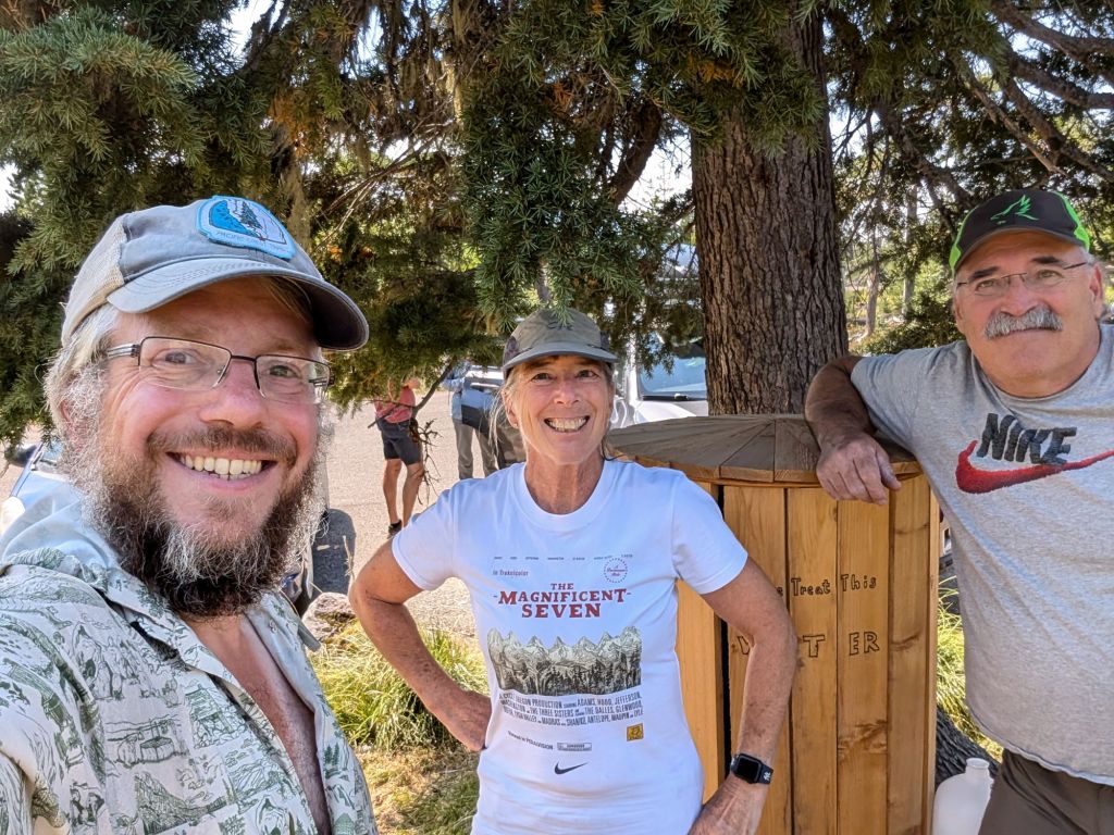 Einen Burger mit Pommes und zwei Cola später stand ich an der Straße und habe versucht einen Hitch zu bekommen. Und tatsächlich hielten kurz nacheinander zwei Trucks an. Die fuhren nur leider in die falsche Richtung. Also habe ich meine Strategie geändert und mich direkt an die Straße gestellt. An der Stelle war ein breiter Seitenstreifen, so das die Autos geht hätten halten können. Und tatsächlich, bereits das zweite Auto hielt und nahm mich mit. Claude und René sind zwei Trail Angel, die unter anderem auch einen Wasser Cache am Santiam Pass unterhalten.