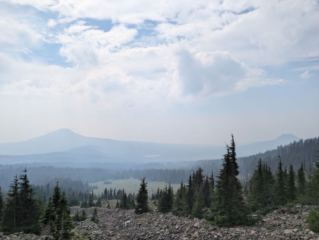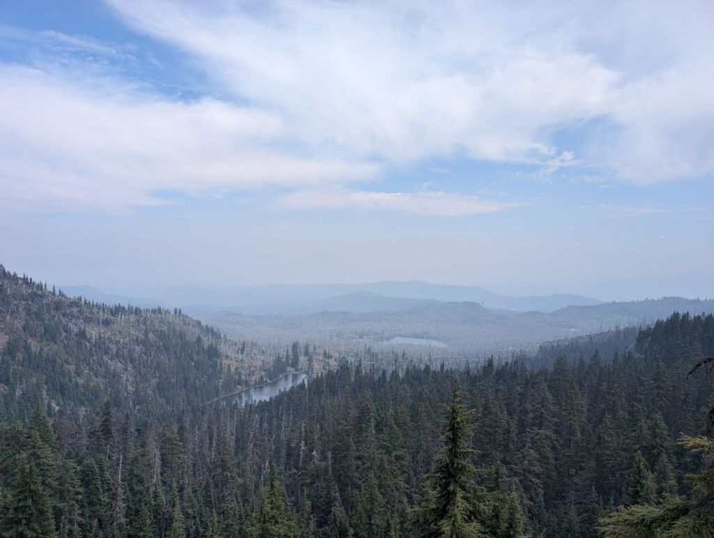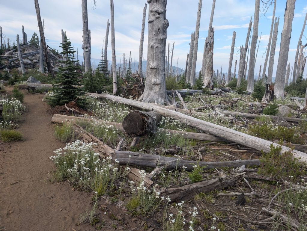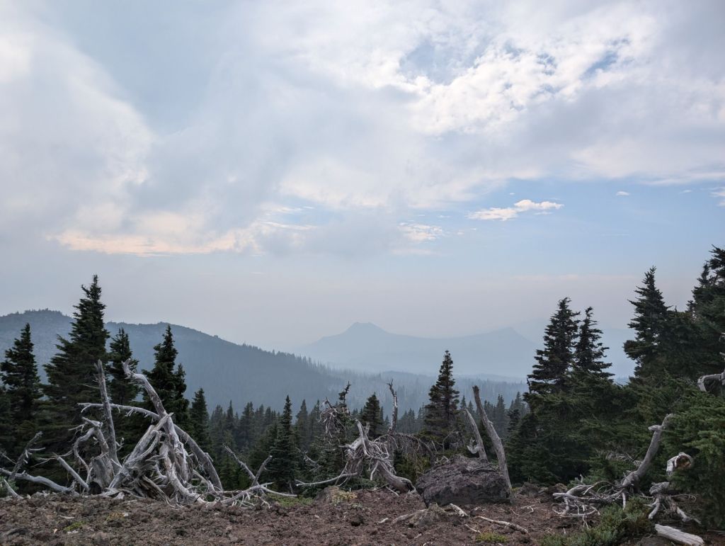 Zwei gewohnte Dinge blieben heute aber doch gleich: der Rauch in der Luft und das wandern durch Burn Zones. Der Wind hat zwar für Abkühlung gesorgt, gleichzeitig aber auch den Rauch rein getrieben und die Aussicht verhangen. Und gleichzeitig den feinen Staub auf dem Trail aufgewirbelt, so das ich mir zweitweise wie sandgestrahlt vorkam.