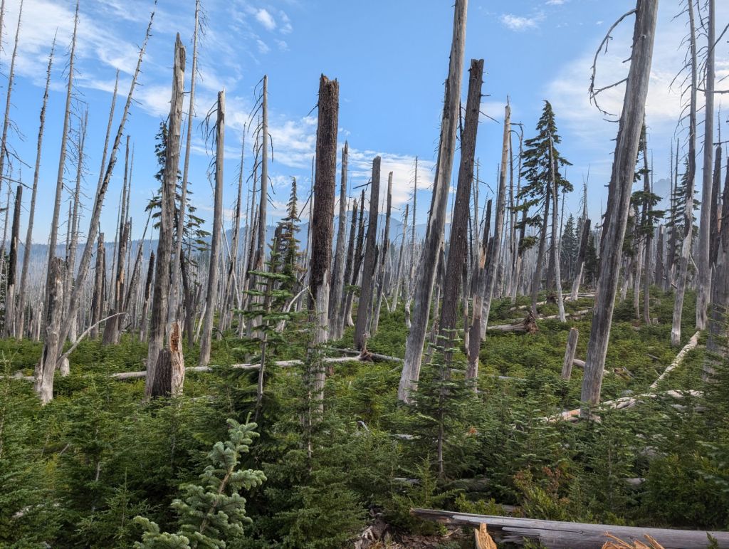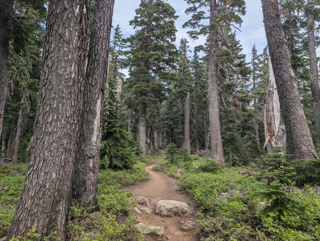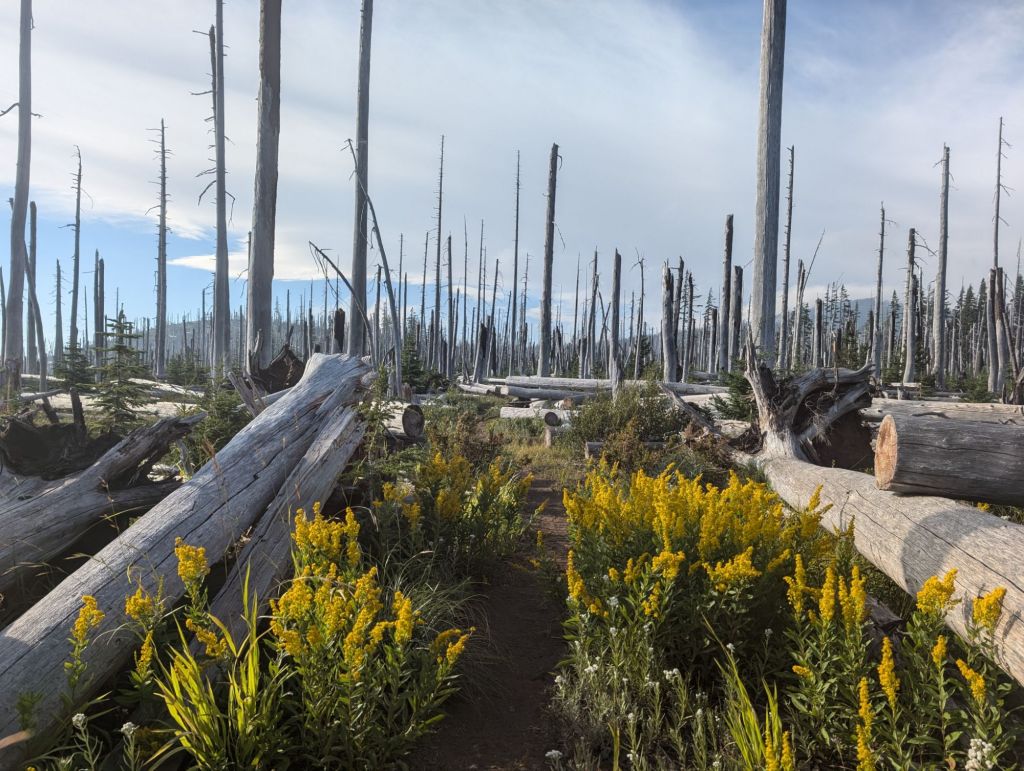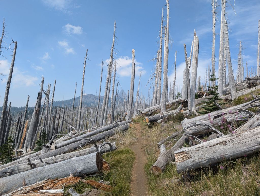 Zwei gewohnte Dinge blieben heute aber doch gleich: der Rauch in der Luft und das wandern durch Burn Zones. Der Wind hat zwar für Abkühlung gesorgt, gleichzeitig aber auch den Rauch rein getrieben und die Aussicht verhangen. Und gleichzeitig den feinen Staub auf dem Trail aufgewirbelt, so das ich mir zweitweise wie sandgestrahlt vorkam.
