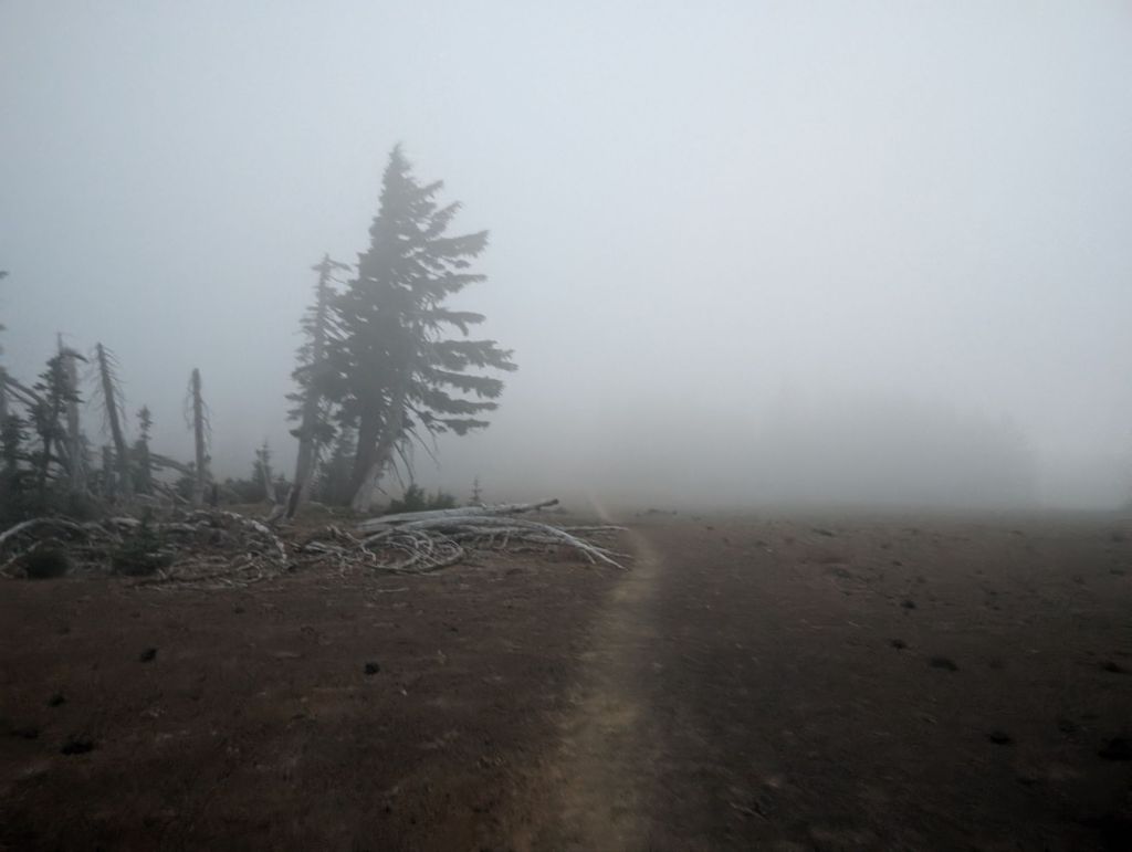 Das war eine stürmische und kalte Nacht. Bei ein paar Böen habe ich gedacht, dass mein Zelt zusammen klappt. Es hat aber alles gut gehalten. Und ich war schon gegen vier Uhr wach. Wirklich aufgestanden bin ich aber erst um 4:30, als Sunfish zum aufstehen gerufen hat. Draußen könnte man kaum etwas sehen, da wir direkt in einer Wolke waren. Entsprechend war mein Zelt auch nass und außerhalb meines Schlafsacks einigermaßen kalt. Um 5:20 sind wir, mit Stirnlampen bewaffnet in unsere 24h Challenge gestartet.