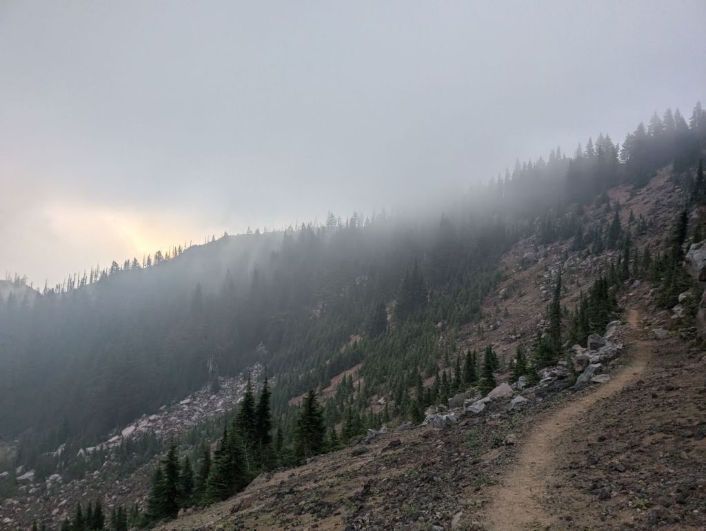 Die erste Stunde ging es aufwärts und weiter durch die Wolken hindurch. Zusammen mit dem Wind gar nicht mal so angenehm. 😉