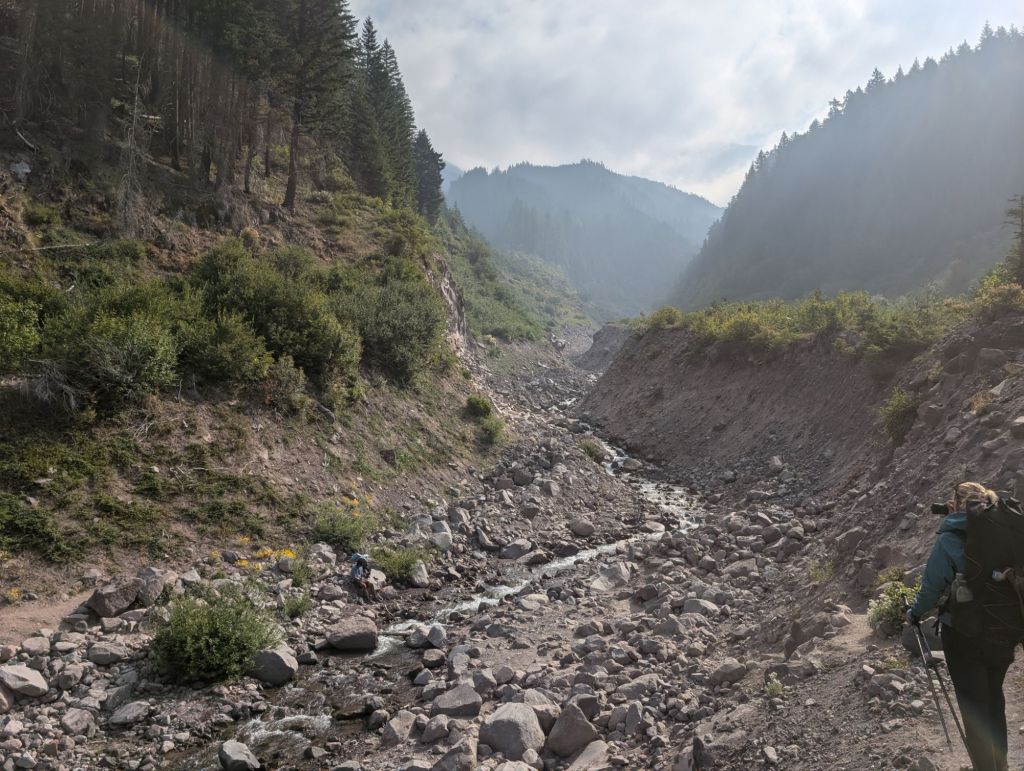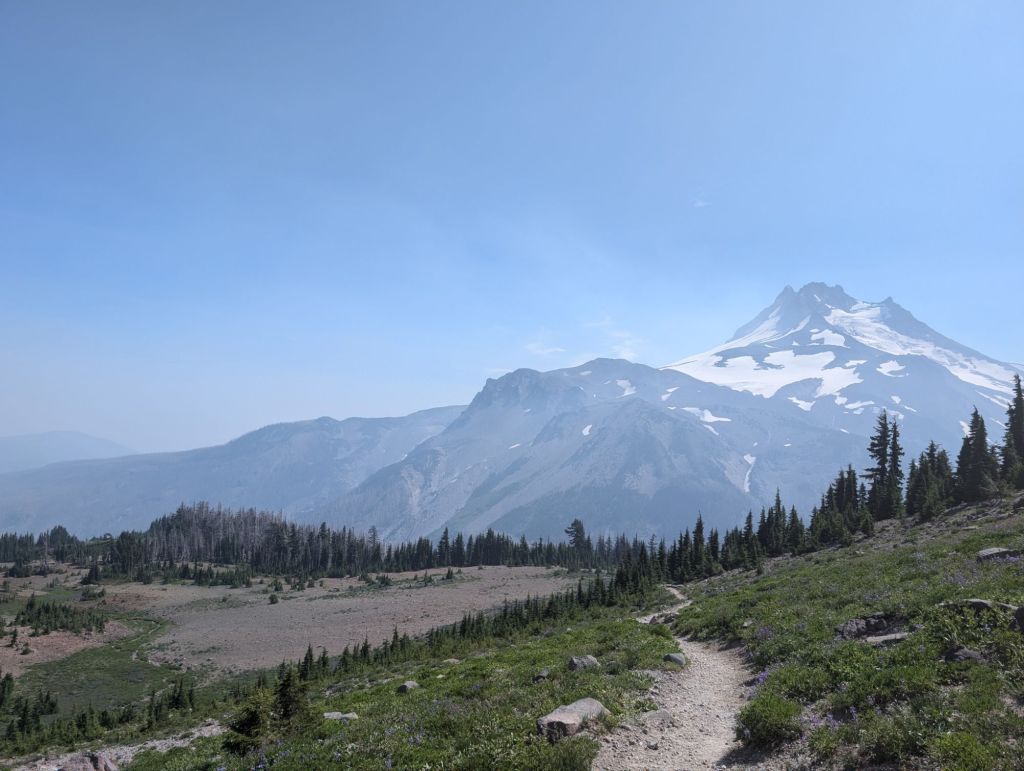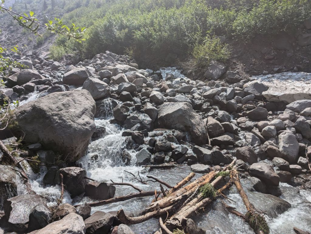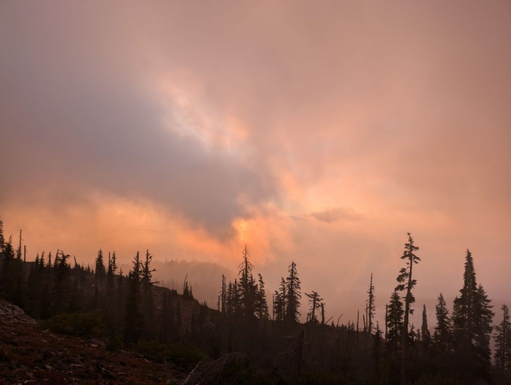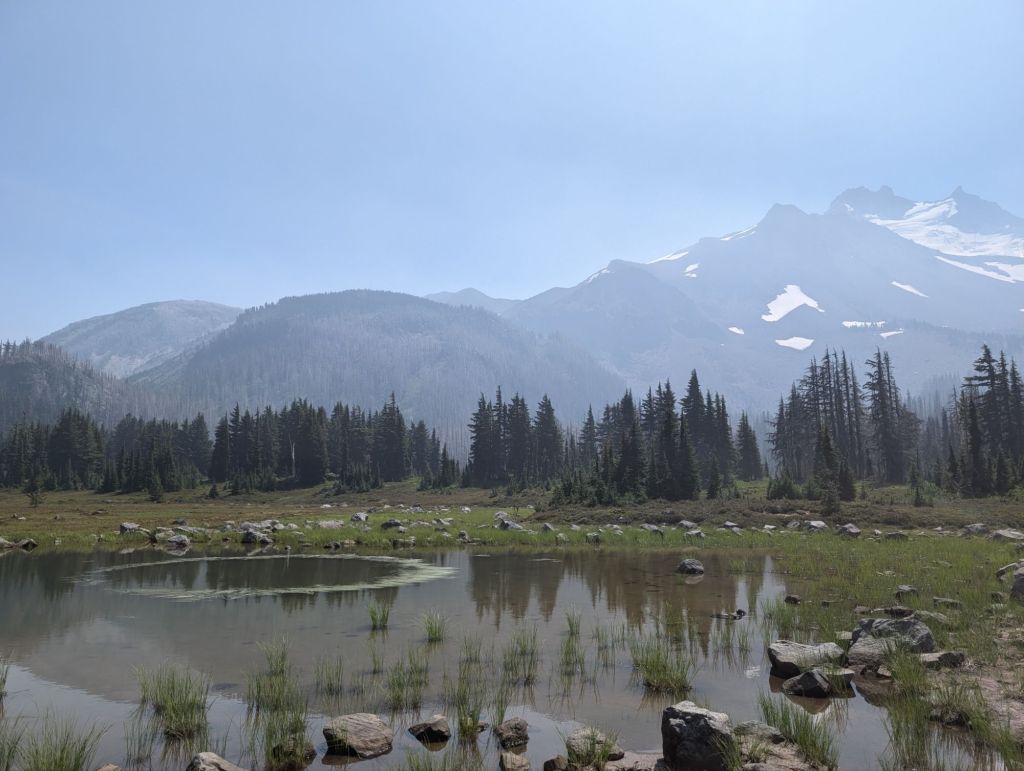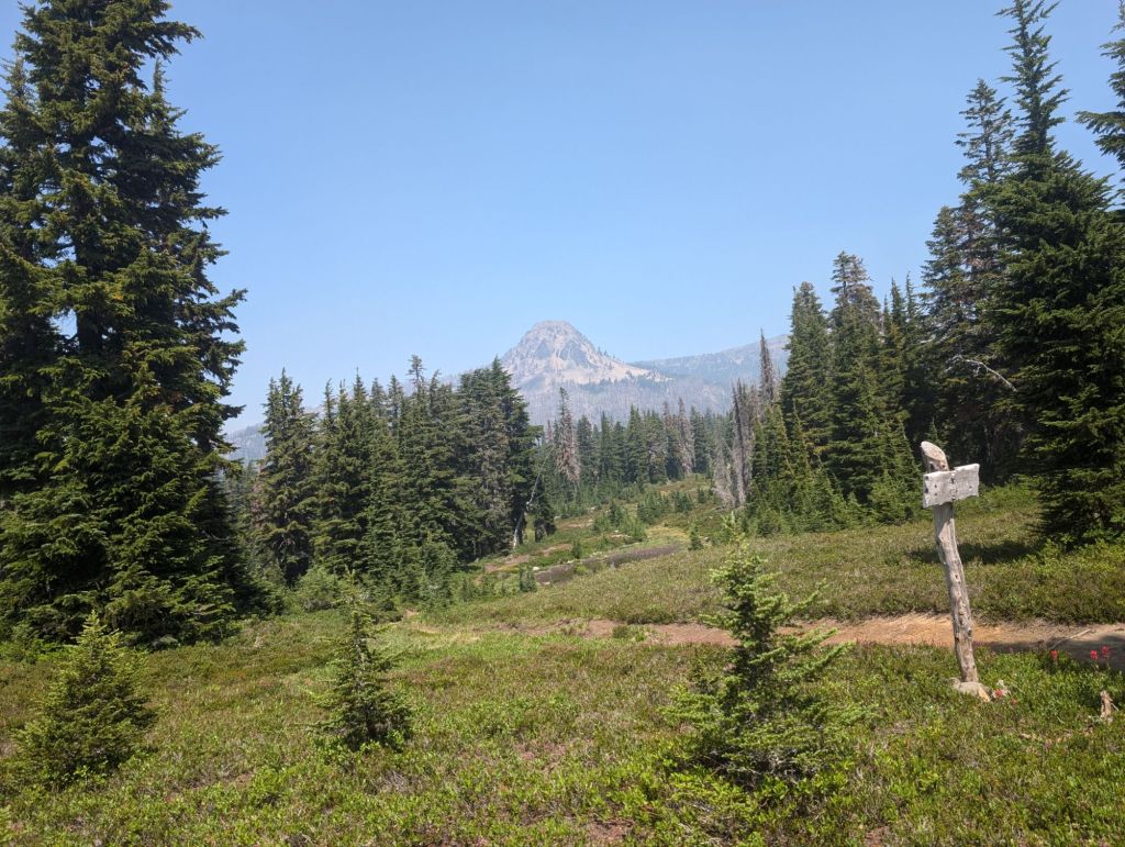 Gegen 19:30 waren die ersten 32 Meilen geschafft und No Cap und ich am Olallie Lake Resort. No Cap stoppt hier, während ich noch weiter gehe. Da es am Resort aber Wasser und Toiletten gibt, stoppen ich hier auch kurz.