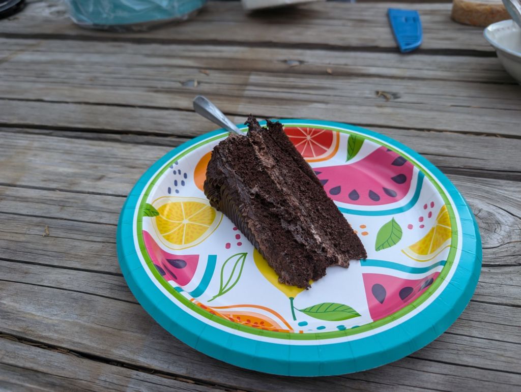 Und wir laufen gerade auf den Campground, da ruft uns jemand zu „Wollt Ihr Kuchen?“. Wir haben das perfekte Timing und bekommen Trail Magic.