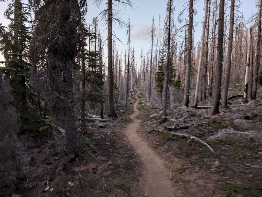 Jetzt fängt es an zu dämmern und ich bin gegen 20h wieder auf dem Trail. Die zweite Hälfte des Tages ohne Gesellschaft, dafür mit Musik im Ohr.