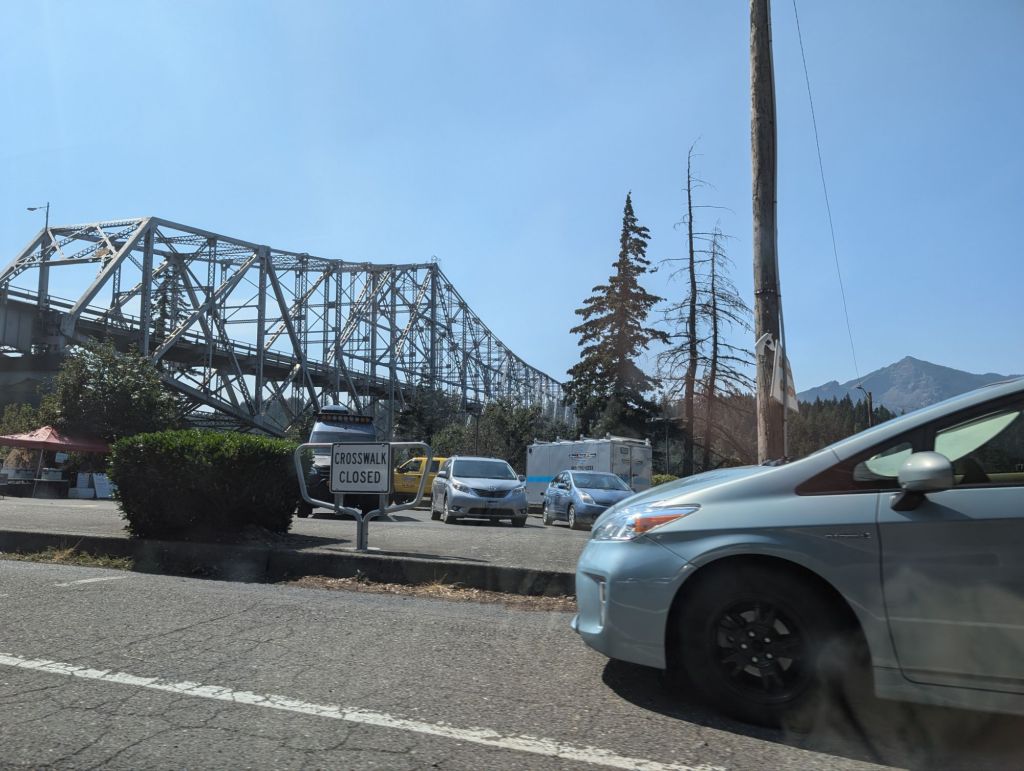 Und tatsächlich, nach viel hin und her habe ich von Mal Funktion (Floyd) einen Ride bekommen. Und zum Glück hatte ich schon eingekauft und mein Zelt fast abgebaut, denn er war schon da. Um 14:15 sind wir in Cascade Locks los.