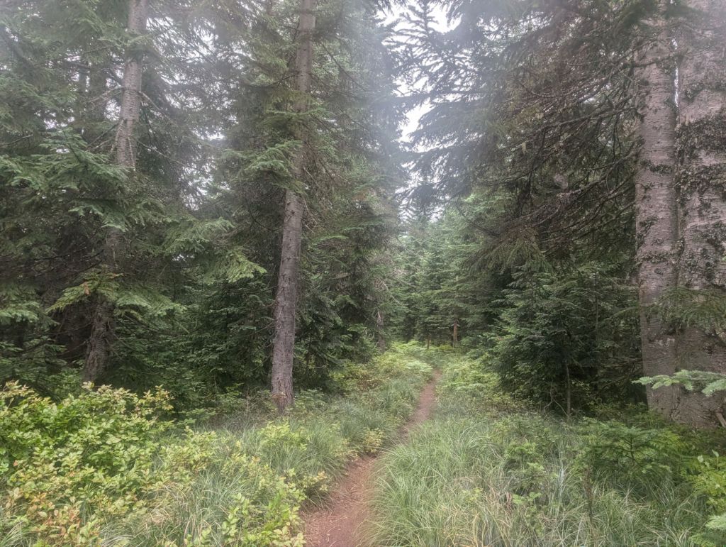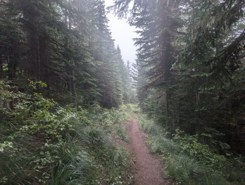 Gegen 16h hat sich dann sogar die Sonne kurz gezeigt und der Nebel wurde weniger. Das hat das wandern doch direkt angenehmer gemacht. Auch wenn es sechs Meilen vor dem Ziel nochmal ordentlich hoch ging. Und teilweise wurde der Trail fies steinig. Gerade mit den Hot Spots und schmerzenden Füßen ein Genuss. 😉