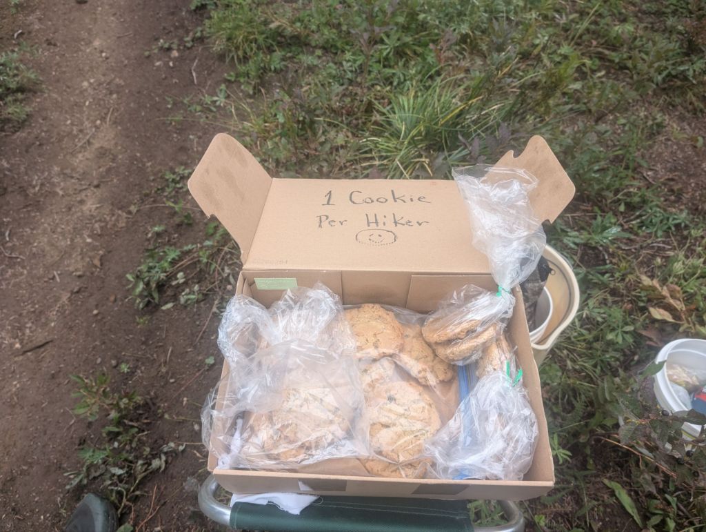 Entlang des Trails wuchsen heute extrem viele Beeren. So viele, dass an einer Stelle ganze sechs Personen gesammelt haben. Und eine davon hat für Hiker Oatmeal-Rosinen Cookies gebacken. Trail Magic!