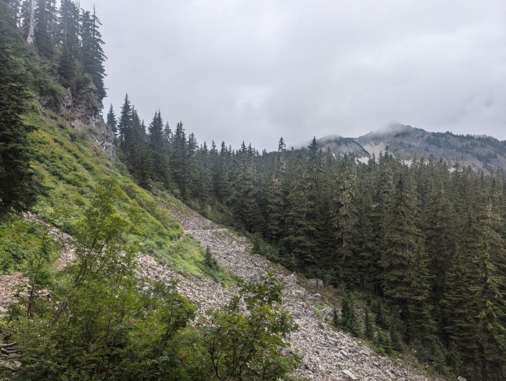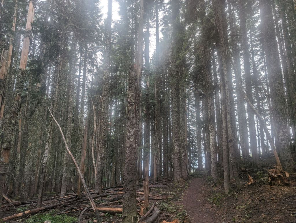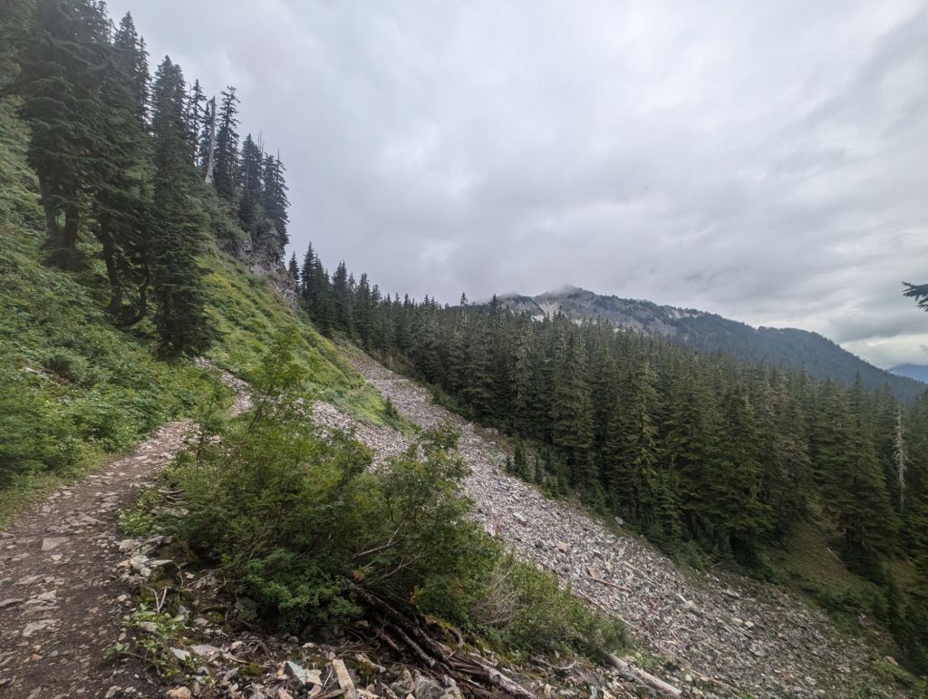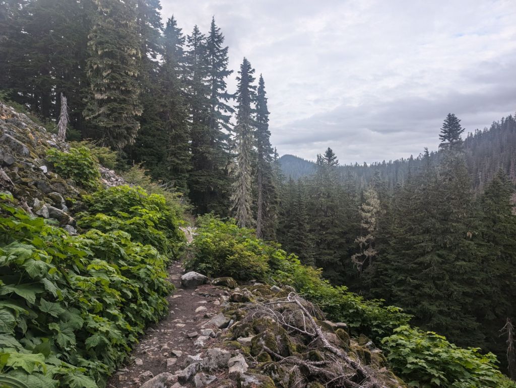 Heute war außerdem eine Berg Etappe. Insgesamt 1.700 Höhenmeter lagen vor mir. Und ein guter Teil davon ging ziemlich ordentlich hoch. Hier habe ich wirklich gemerkt, dass die ich den Übergang von Oregon nach Washington übersprungen habe. Außerdem war ich langsam. War ich in Oregon noch mit 3+ Meilen pro Stunde unterwegs, sind es hier mit Glück noch 2,7.