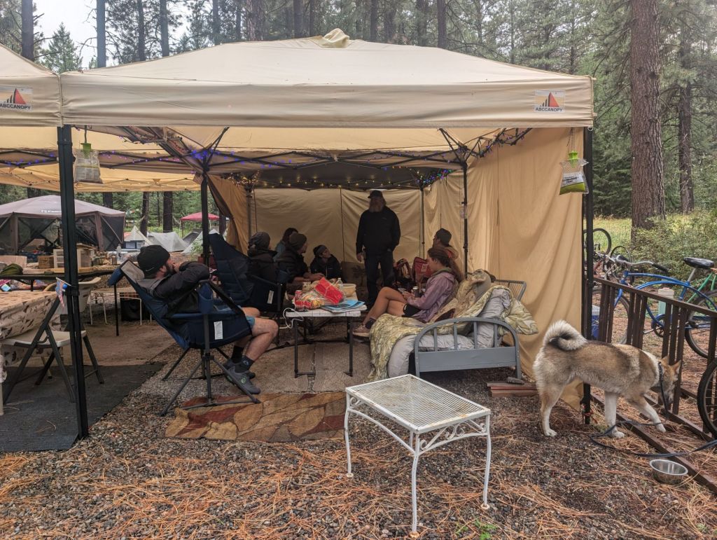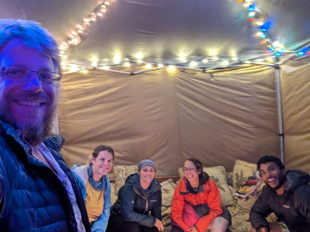 Den Abend haben wir mit Gesprächen im Gemeinschaftszelt verbracht.