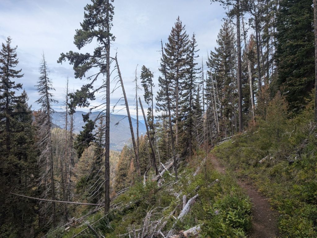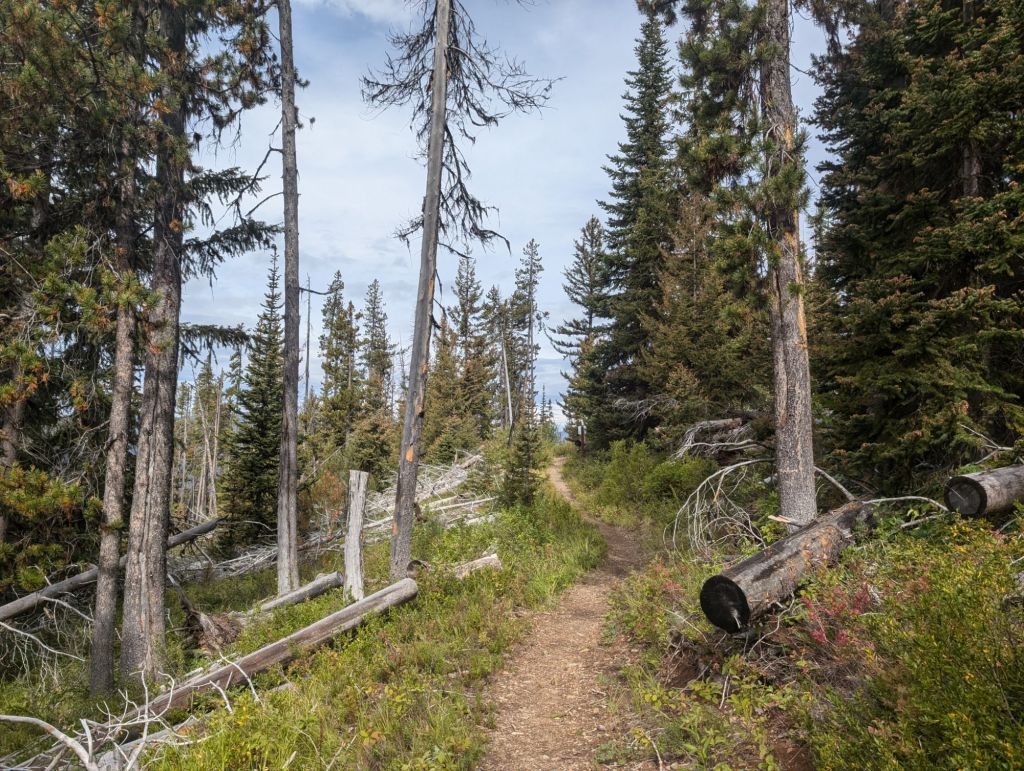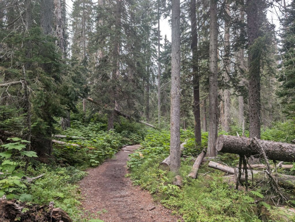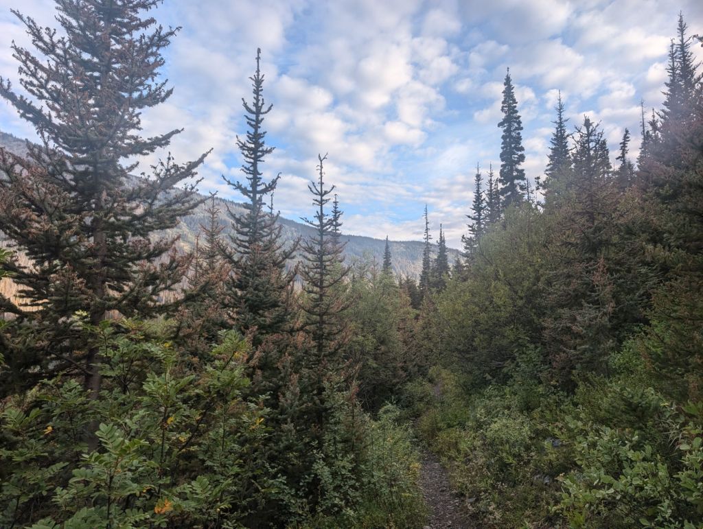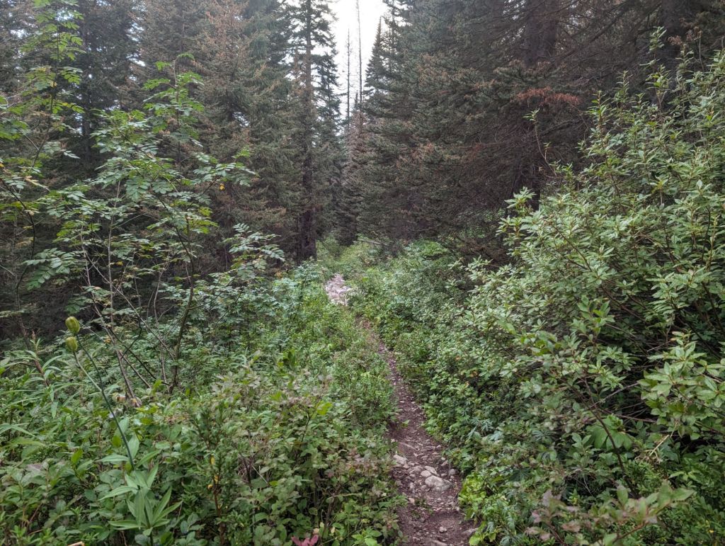Und die ersten drei Kilometer waren eher ungepflegt. Überwachsen, viele Blow Downs und teilweise ausgespült.